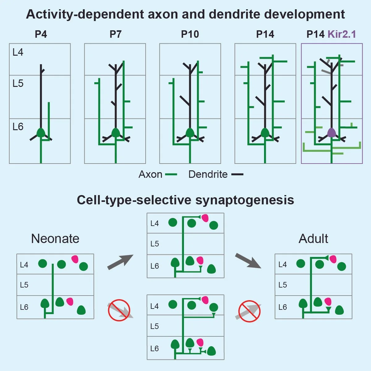 A big congratulations to Alan Gutman-Wei, Sriram Sudarsanam and the whole team on publication of our work showing that cell-type-specific synaptogenesis rather than promiscious synapse formation followed by pruning of inappropriate synapses establishes the intracortical connectivity of layer 6 corticothalamic neurons. In addition, using sparse labeling, brain clearing and light-sheet microscopy, we also determine the development of layer 6 corticothalamic neuron axons and dendrites during the first two postnatal weeks and show that their development is differentially affected by altering the intrinsic excitability of these neurons during early development.